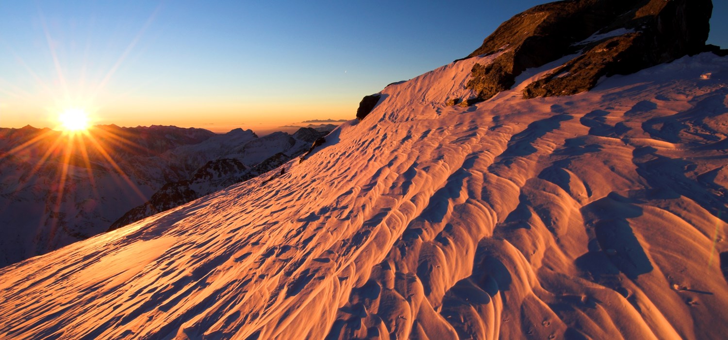 Und wenn im Frühling die Firnschneehänge mit der Sonne um die Wette funkeln, können alle Sonnanbeter die warmen Frühlingsstrahlen genießen und dann im gleißenden Firnschnee abfahren...